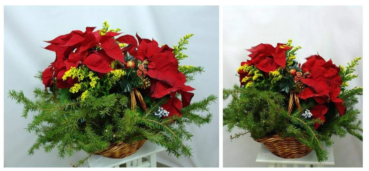 Флористы Цветочного Центра Розарио, сделают любую композицию  с Рождественской Звездой, а служба доставки №1 транспортировать растение в Ваш дом, офис и куда Вам будет необходимо.